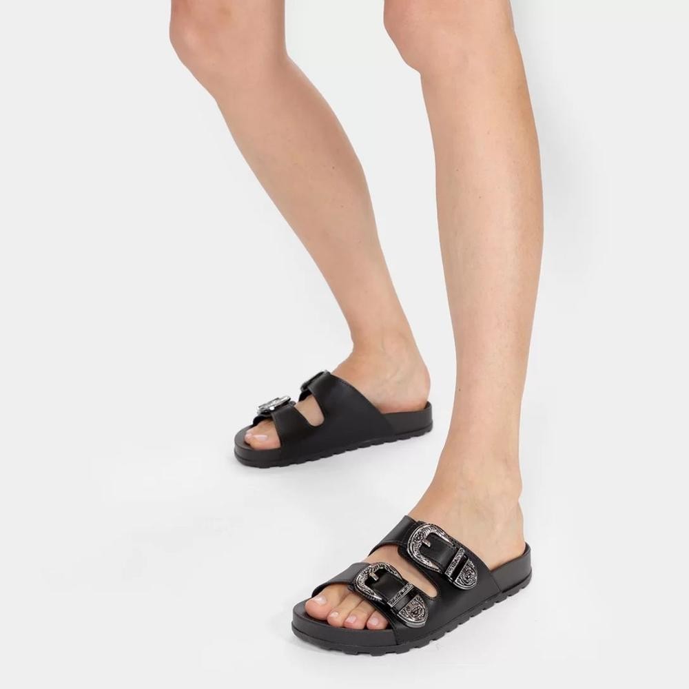 Rasteira Moleca Metal Fivelas - Preto