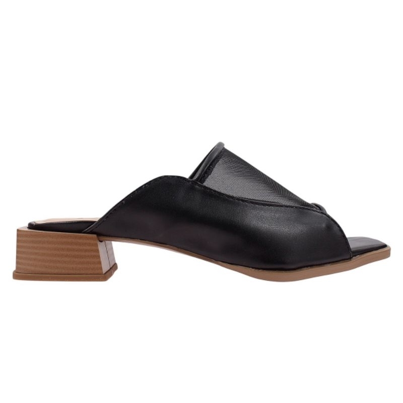 sandália rasteira napa sintético tela em tule/ nylon cor preto. toda costurada forrada . salto bloco amadeirado palmilha, confort designer moderno e elegante fabricação própria. numeração do 34 ao 40 .
