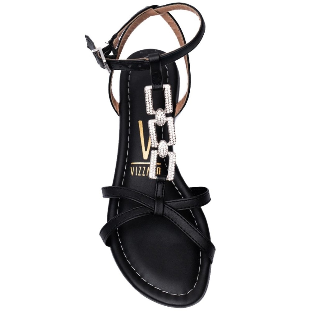 Rasteira Vizzano Metal Strass Tiras Feminina - Preto