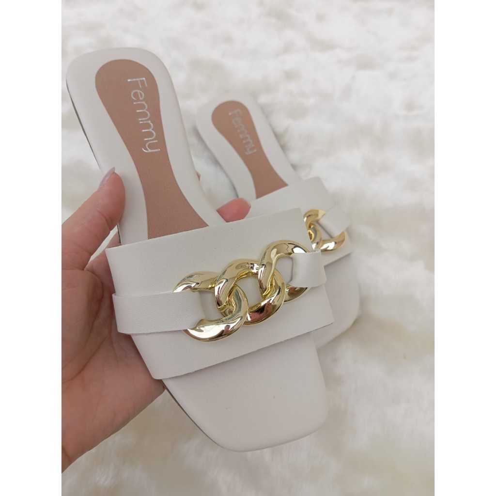 Rasteirinha com acessório PRATEADO, rasteira básica feminina, bico quadrada, confortável - Femmy 061