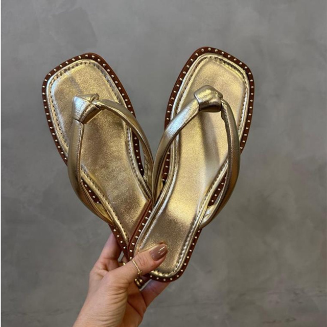 Rasteirinha Feminina Bico Quadrado Feminina Luxo Conforto - Detalhe em Tachas RN2 integra a oferta da Shopee Brasil na subcategoria Sandália Plana e Rasteirinha (de Sapatos Femininos) por R$ 38,89 (61% de desconto sobre o preço original de R$ 99,72). Com avaliação de 4.9 de 5 estrelas e 351 unidades vendidas, este produto se destaca pelo excelente custo-benefício.