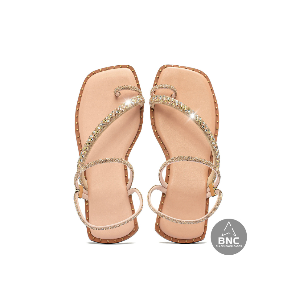 Rasteirinha Feminina Papete Dedo Com Strass Colorido Super Macia Promoção