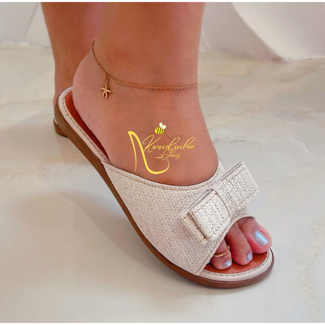 Rasteirinha feminina plana de laço
