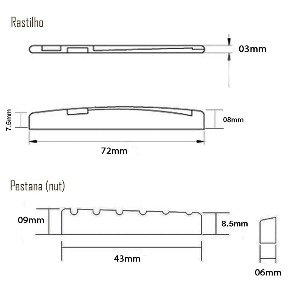 Rastilho E Pestana Plástico Violão Aço Osso para violão nylon rastilho 3mm/72mm/9mm pestana 9mm/43mm/8,5mm Garantia do vendedor: 3 meses