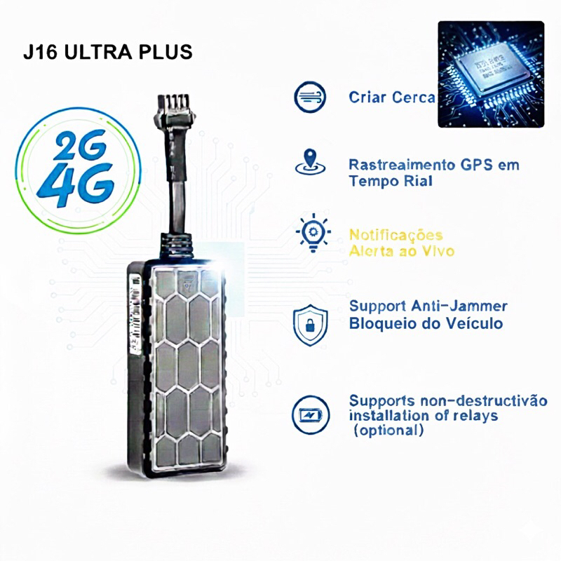 Rastreador GPS Veicular J16 Ultra 4G/2G | Antifurto em Tempo Real | Moto, Carro e Uso Pessoal