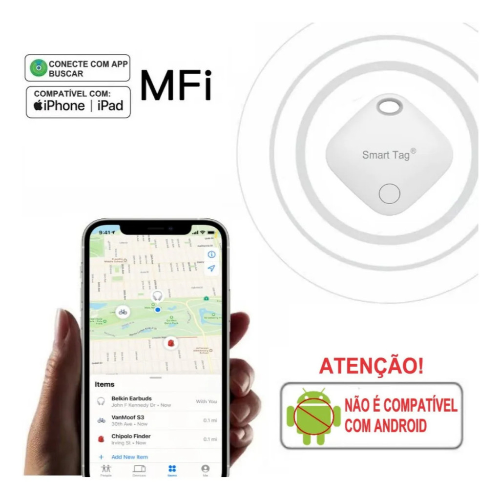 Rastreador Smart Tag MFI Localizador GPS Mala Carro Moto Pet Criança Sem Limite de Distância