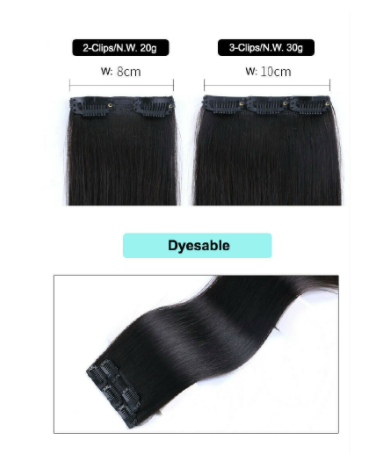 Cabelo de uma peça com 2 clipes ou 3 clipes Descrição: Qualidade 100% nova e de alta qualidade! Material: cabelo real Comprimento do Comprimento: 40/50/60/70 cm (15,7/19,7 polegadas/23,6/27,5 polegadas) 2 clipes: comprimento 8 cm (3,15 polegadas) 3 clipes: comprimento 10 cm (3,93 polegadas) Cor preta natural, marrom claro, marrom escuro Pode ser tingido: sim Pode ser permanente: sim Características: invisível, sem costura, confortável Sugestão: Para alcançar o efeito de aumento de cabelo, compre 3-5pcs cabelo com 2clips Ou 2-4pcs cabelo com 3clips Lista de embalagem: Uma peça 2/3 clipes Cabelo