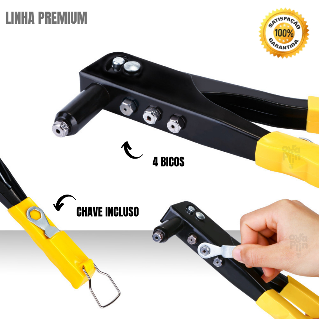 Rebitadeira Profissional Alicate Rebitador Manual + 100 Rebites + Broca Aço 4mm Ferramentas