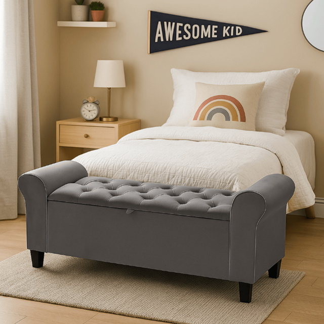 Recamier Baú Casal para Quarto 120 Estofado com Pistão Banco Captonê Aveludado