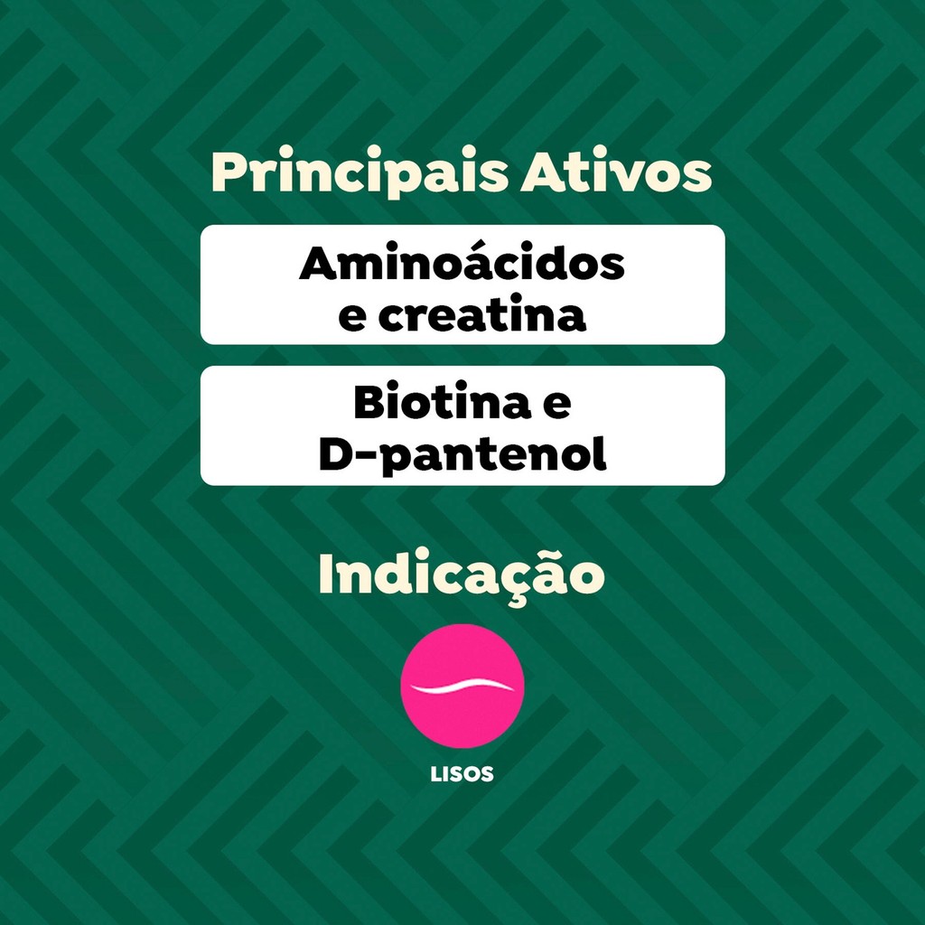 A Recarga de Queratina Restauração Intensa combate os 7 danos extremos: frizz, quebra, opacidade, elasticidade, ressecamento, pontas duplas e cabelos fragilizados. INDICAÇÕES Para quais tipos de cabelo? Cabelos lisos e ondulados naturais, alisados ou relaxados. Qual a indicação? Cabelo danificado, opaco e quebradiço. Pode usar a partir de quantos anos? A partir de 12 anos. ATIVOS Quais os principais ativos? Conta com a tecnologia Total Repair 360, formada por aminoácidos, creatina, biotina e D-pantenol que garantem fios resistentes, saudáveis e hidratados. Além da tecnologia Liss Expert, que oferece ação profunda na fibra capilar para resultado rápido e proteção contra danos externos. MODO DE USO Qual a melhor forma de usar? Aplique no cabelo limpo e úmido, da raiz até às pontas. Sem enxaguar, penteie e potencialize o tratamento finalizando com prancha ou secador. CARACTERÍSTICAS É produto vegano? O produto é vegano. É liberado? O produto não é liberado.