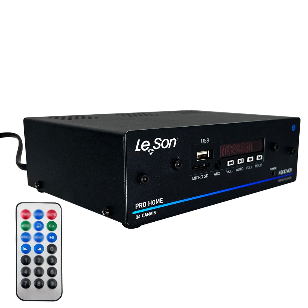 Receiver Amplificador LeSon Pro Home 120w Som Amb 4 Canais Bluetooth Usb Som Ambiente