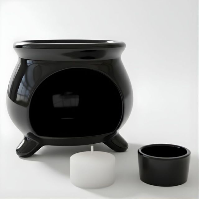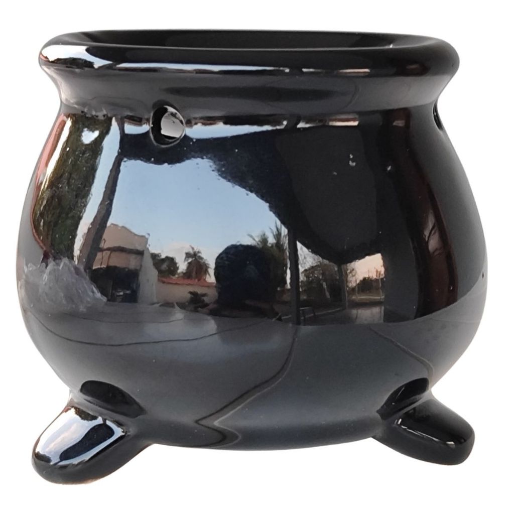 Rechaud Difusor Aromatizador Com Vela Caldeirão de Dia das Bruxas Cerâmica Halloween Preto