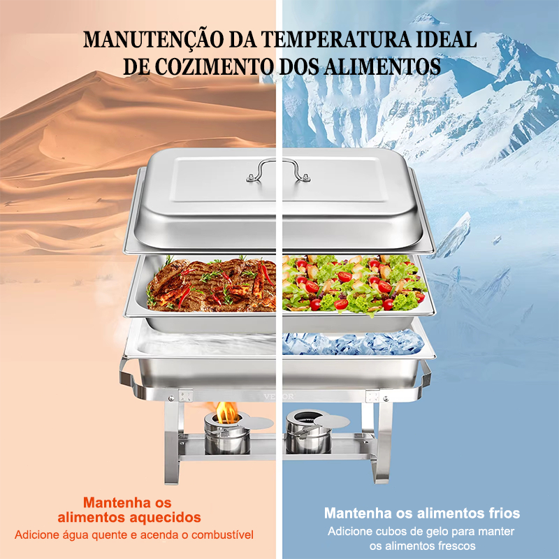 Rechaud Profissional Inox 12 Litros Banho Maria Kit 6 Peças Retangular Ideal para Buffet Grande