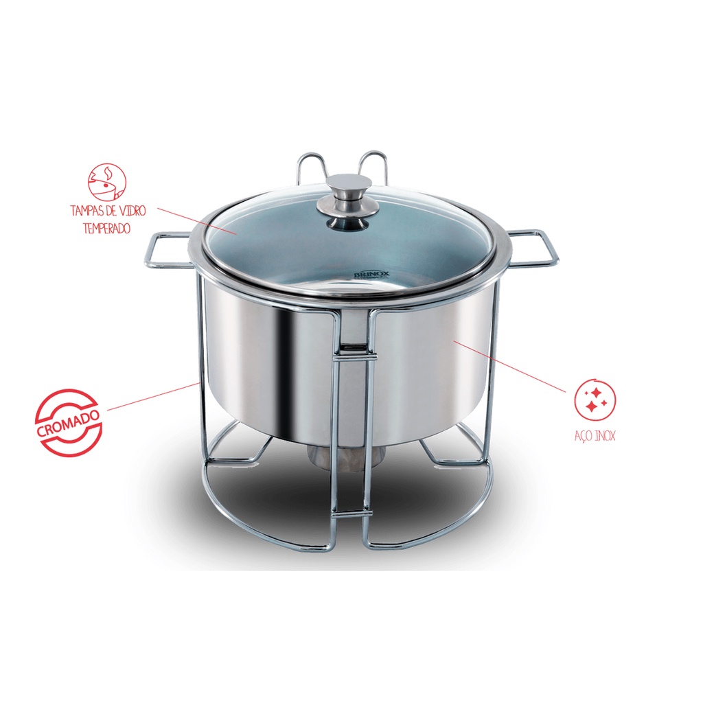 Seja Bem-Vindo(a) à Mimorada! O "Rechaud Redondo Brinox Savoy 4,5 Litros Ø 42 cm Aço Inox" é um utensílio elegante e funcional projetado para manter os alimentos aquecidos em bufês ou eventos. Aqui estão algumas características desse produto: - Capacidade: Este rechaud tem uma capacidade de 4,5 litros, o que é adequado para armazenar uma quantidade considerável de alimentos quentes. - Design Redondo: O formato redondo proporciona uma apresentação clássica e elegante, adequada para diversos ambientes, como restaurantes, refeitórios e hotéis. - Material: A estrutura do rechaud é feita de aramado cromado, o que confere durabilidade e um toque estético. A caçarola é de aço inoxidável, um material resistente e fácil de limpar. - Tampa de Vidro Temperado: A tampa de vidro temperado não apenas permite a visualização dos alimentos, mas também possui uma saída para o vapor, contribuindo para manter a temperatura dos alimentos por mais tempo. - Uso Profissional: Este rechaud é projetado para uso profissional em ambientes comerciais, proporcionando uma solução prática e elegante para servir alimentos aquecidos. - Dimensões:** O diâmetro deste rechaud é de 42 cm, o que oferece uma área suficientemente grande para a disposição dos alimentos. O Rechaud Redondo Brinox Savoy é uma escolha versátil e sofisticada para quem busca manter os alimentos aquecidos de maneira eficiente e elegante em diferentes contextos. Lembre-se de seguir as orientações do fabricante para garantir o uso adequado e a durabilidade do produto.