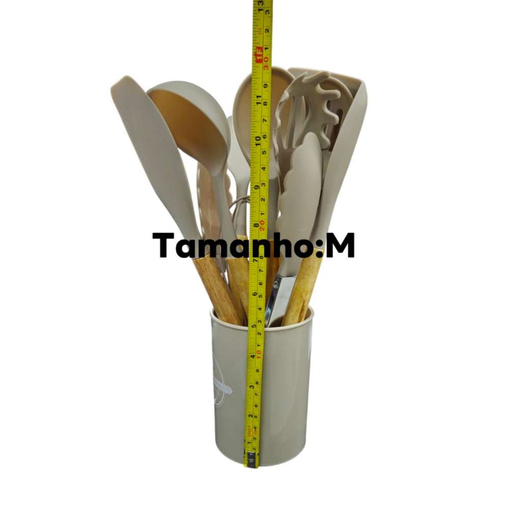 Recommend Jogo de Cozinha Kit C/12/5 Peças de Silicone, Utensílios e Copo Suporte para Cozinha Cabo de Madeira