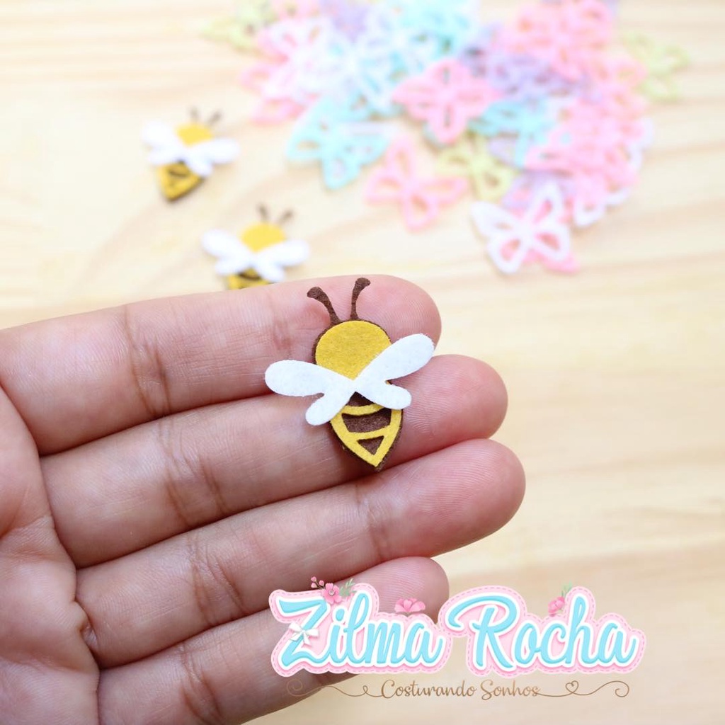 Recorte de Feltro Abelha com 3 cm 20 Unidades (cada unidade é composta de 3 partes) As partes não são coladas nem adesivas