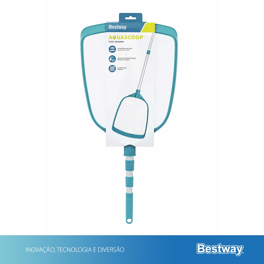 Você está comprando um produto Bestway original, da Bestway Store, sua loja oficial no Brasil! Quem somos: Há mais de 28 anos, a Bestway foi fundada com uma visão clara: criar diversão e experiências memoráveis para todos por meio dos produtos e serviços que oferecemos. Estamos presentes em todo o MUNDO, incluindo os Estados Unidos, França, Itália, Alemanha, Austrália, China e em mais de 120 PAÍSES, com a operação de seis fábricas próprias. Continuamos comprometidos com a qualidade e a inovação em todos os nossos produtos, mantendo-nos constantemente atualizados e acompanhando o que há de novo. >>> Aproximadamente 1 dentre 50 pessoas em todo o mundo possui um produto Bestway! Manter sua piscina impecável nunca foi tão fácil com o Rede de Limpeza de Piscina Bestway AquaScoop! Este acessório foi projetado para simplificar a limpeza, removendo folhas, detritos e sujeira da superfície e do fundo da sua piscina sem complicações. Por que a rede limpeza é indispensável? Limpeza sem Esforço: A rede de malha durável captura efetivamente os detritos na superfície da água, enquanto o design angular alcança facilmente os cantos e áreas de difícil acesso da piscina. Tecnologia Auto-Reparável: Diga adeus às preocupações com pequenos furos! A rede do AquaScoop conta com um material inovador que se autorrepara. Basta esfregar a área perfurada, e a rede se consertará sozinha, prolongando a vida útil do seu apanha-folhas. Leve e Resistente: Com uma vara de alumínio leve e retrátil, o AquaScoop oferece manuseio confortável e é incrivelmente resistente, facilitando a limpeza de qualquer piscina. Ampla Compatibilidade: Ideal para piscinas de até 3,96 m de diâmetro. Especificações: - Comprimento 1,63m; - Compatível com piscinas 3,96 m de diâmetro; - Leve, apenas 379 gramas; - Cabo retrátil. Conteúdo: - 1 Rede de Limpeza de Piscina Bestway AquaScoop