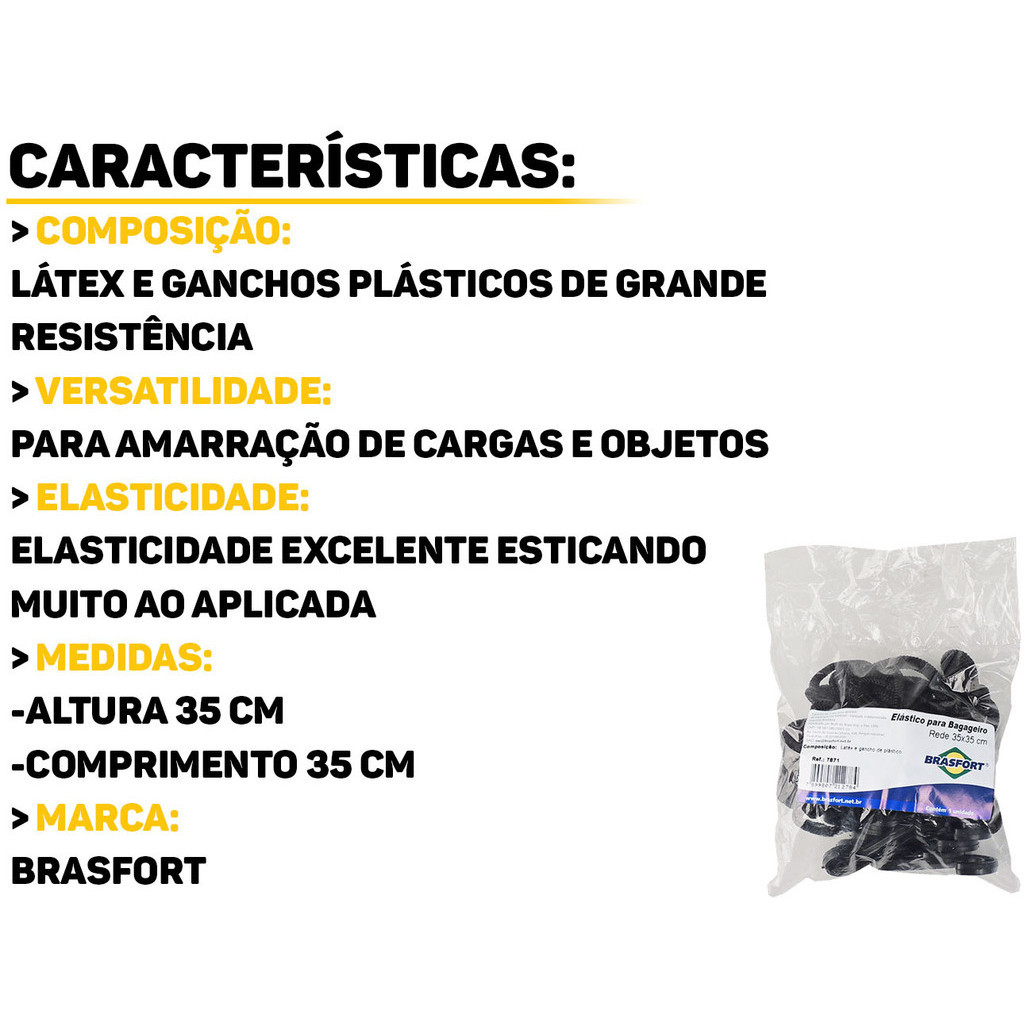 Rede Elástica Tipo Aranha Para Mala Capacete Bagageiro Com Ganchos Plásticos 35x35 Brasfort