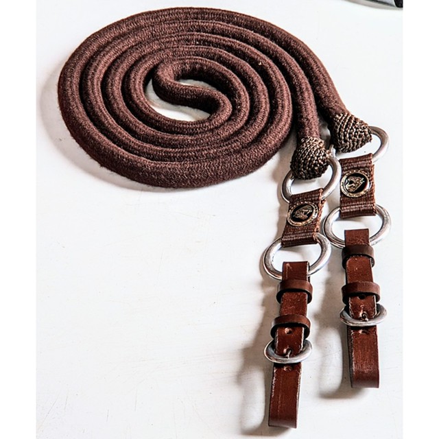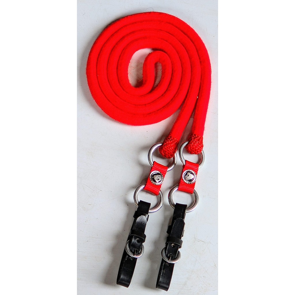 Rédea de lã luxo de ótima qualidade, com 4 argolas em alumínio polido com apliques centrais Cavalinho, uma ruela zincada e ponteiras de couro. Medindo cerca de 2 metros e 70 centímetros de ponta a ponta. Produto macio com fino acabamento, totalmente livre de ferrugens, muito resistente, indicado para todas as raças.