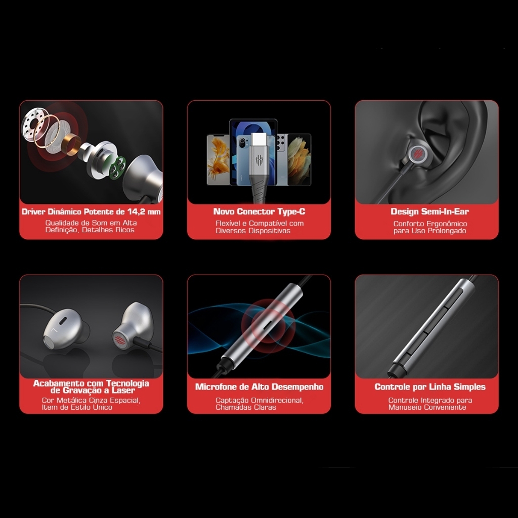 Esses fones de ouvido são uma excelente opção para quem busca qualidade sonora e conforto, seja para jogos, músicas ou chamadas. 🎮 Especificações Gerais - Tipo: Fone de ouvido com fio (in-ear) - Estilo: Gamer / Casual / Chamadas - Cor: Cinza espacial (com detalhes em vermelho) 🔊 Áudio - Driver: Dinâmico de 14,2 mm - Frequência de resposta: 20 Hz – 20.000 Hz - Impedância: 32 Ω (ohms) - Sensibilidade: 105 dB ± 3 dB - Cancelamento de ruído passivo: Sim (isolamento intra-auricular) 🎙️ Microfone - Tipo: Integrado no cabo - Função: Chamadas e comunicação in-game - Captação: Omnidirecional 🎚️ Controles - Botões no cabo: Sim - Funções: Reproduzir / Pausar / Atender chamadas / Controle de volume 🔌 Conectividade - Versões disponíveis: 3,5 mm P2 – compatível com celulares, PCs e consoles com entrada de áudio USB Tipo-C – ideal para smartphones mais novos sem entrada P2 - Comprimento do cabo: ~1,2 metros - Material do cabo: Revestido, resistente a dobras