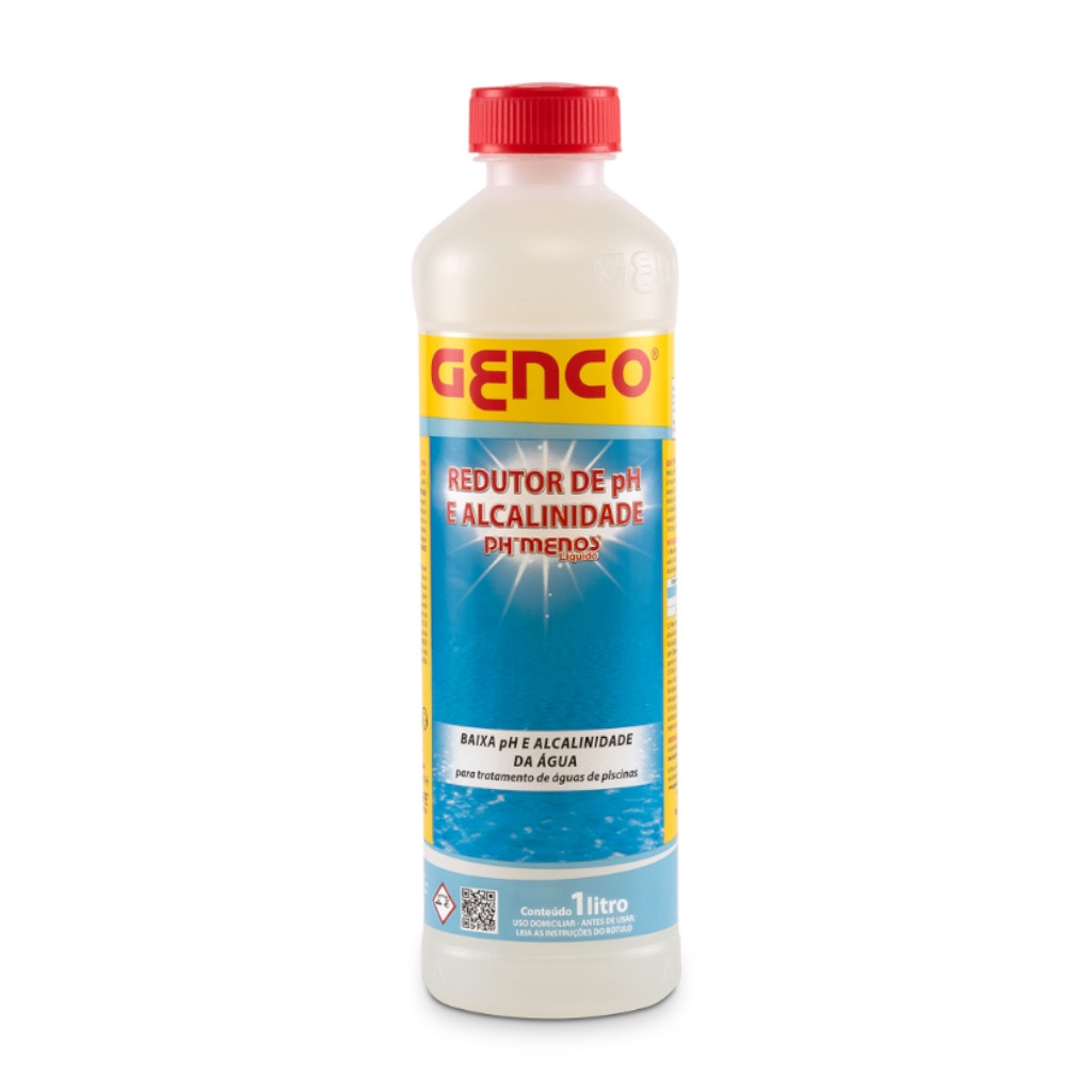 Contém: 1 Redutor de PH e Alcalinidade - PH MENOS 1 L GENCO Ácido líquido para baixar o pH e a alcalinidade total. Utilizar quando o pH estiver acima de 7,8 ou a alcalinidade total acima de 120 ppm. Validade: 2 anos Disponível na embalagem: 1L 1) Mantenha o pH dentro da faixa ideal entre 7,4 e 7,6, a alcalinidade total entre 80 e 120 ppm e a dureza cálcica entre 200 e 400 ppm. 2) Analise diariamente o pH e, se estiver acima de 7,8, corrija-o com pH® MENOS LÍQUIDO GENCO. Já alcalinidade total deve ser analisada semanalmente e corrigida com pH® MENOS LÍQUIDO GENCO® sempre que estiver acima de 120 ppm. Verifique as dosagens nas tabelas abaixo. 3) Adicione a dosagem recomendada em um balde plástico com água da própria piscina e espalhe essa solução sobre a superfície da água com o sistema de filtração em funcionamento (válvula do filtro na posição ‘filtrar’) e mantenha a filtração por pelo menos 30 a 60 minutos após aplicação do produto. 4) No dia seguinte reanalise o pH e alcalinidade total para certificar-se de que está na faixa ideal recomendada. Em caso negativo, repita a operação. 5) Só utilizar a piscina 30 minutos após aplicação do produto. OBSERVAÇÃO: As dosagens recomendadas deverão servir apenas de guia inicial e conferidas com testes frequentes após as devidas correções, pois as dosagens podem variar de acordo com alcalinidade total da água. DÚVIDAS FREQUENTES 1. O produto é novo? Sim, o produto anunciado é novo. 2. O produto está disponível em estoque? Sim, disponível para envio imediato após a liberação de sua compra. 3. O produto acompanha nota fiscal? Sim. Trabalhamos somente com produtos originais de fábrica. Verifique sempre os seus dados cadastrais antes de efetuar a compra. ***As imagens poderão ter alteração de cor nos produtos, devido a diferença de cores entre monitores, telas de celulares e luzes ambientes na hora da foto.