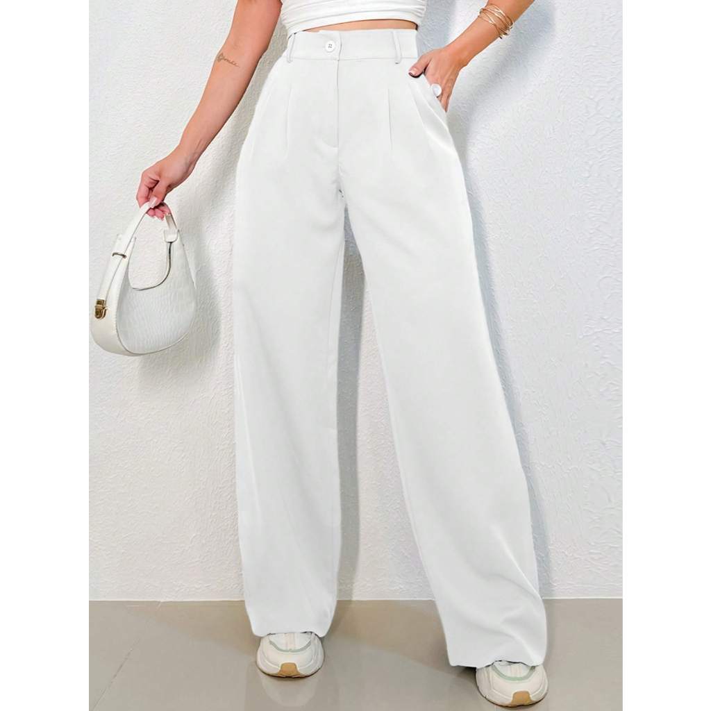 REF: 3271--BX003 Calça Feminina Cintura Alta, Calça Casual Feminina, Calça Perna Larga, Calça Elegante