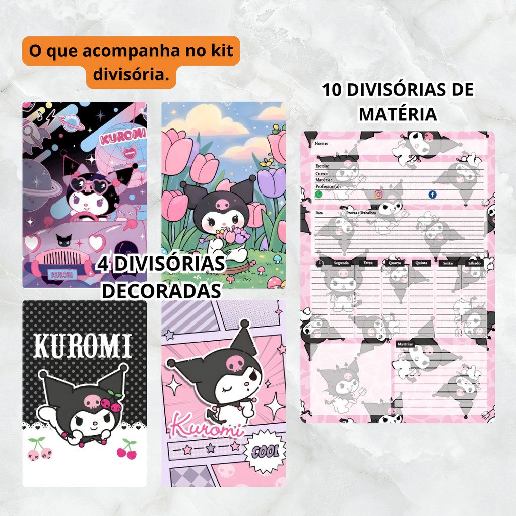 REFIL 100 FOLHAS PARA CADERNO DE DISCO KUROMI (M - 9 FUROS) E KIT DIVISÓRIA