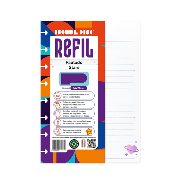 Refil Caderno De Disco Iscool Inteligente Pautado Star Inteligente 90g 50 Folhas