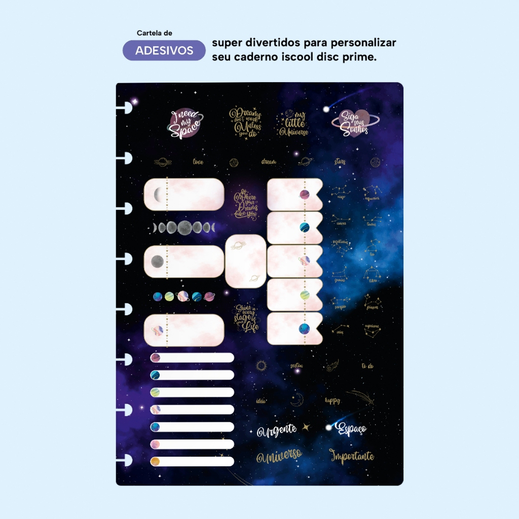 Refil ISCOOL DISC STAR P 14x20 cm (A5), MÉDIO 17x23 cm, GRANDE 20x27,5 cm com 50 folhas, papel 90g com uma cartela de adesivos. - Compatível com outros fabricantes de sistemas de caderno de disco, inclusive da marca Caderno Inteligente®. >>> ESPECIFICAÇÕES DO PRODUTO <<< - Tamanho das folhas: 14cm de largura por 20cm de comprimento, 17cm de largura por 23 cm de comprimento ou 20 cm de largura por 27,5 cm de comprimento. - Quantidade de folhas: 50 folhas pautadas decoradas com cantos arredondados. - Folhas impressas em papel sulfite/offset 90g branco. - 1 cartela de adesivos divertidos. Precisando de mais folhas para dar aquela renovada no seu caderno de discos? Com nosso refil ISCOOL DISC STAR, você garante novas páginas para fazer suas anotações, rascunhos e desenhos sempre que precisar, deixando seu caderno novinho em folha! Se suas folhas acabaram ou rasuraram, nosso refil é perfeito e 100% compatível com outros sistemas de caderno de discos do mercado, inclusive da marca Caderno Inteligente®. São 50 folhas pautadas decoradas no tamanho P 14x20 cm (A5), MÉDIO 17x23 cm, GRANDE 20x27,5 cm em papel sulfite/offset com gramatura de 90g, o papel mais “grossinho”, deixando rolar solta sua criatividade para utilizar suas canetas mais especiais! As folhas contêm 8 furos em formato de “cogumelo” proporcionando fácil encaixe e desencaixe nos discos, você livre pra montar seu caderno como quiser! Acompanha ainda uma cartelinha de adesivos coloridos para você se divertir personalizando o seu caderno com a sua cara. 23,Afinal, com o ISCOOL DISC, o legal é ser criativo, porque inteligente é você! Produzimos cadernos, agendas e produtos de papelaria há mais de 27 anos! Garantimos a qualidade e a excelência do seu produto. >>> INFORMAÇÕES DIVERSAS <<< - Leia com atenção a descrição do produto, caso tenha dúvidas, entre em contato com a nossa equipe. Ficaremos felizes em atendê-lo(a). - Recomendamos que você fique atento às suas informações para a entrega do produto, pois caso algo esteja incorreto (endereço completo, telefone para contato, etc.), você pode acabar não recebendo o seu pedido. - Após a compra, se sentir a necessidade de conversar conosco, nos acione através do chat (mensagens). Será um prazer atender você!