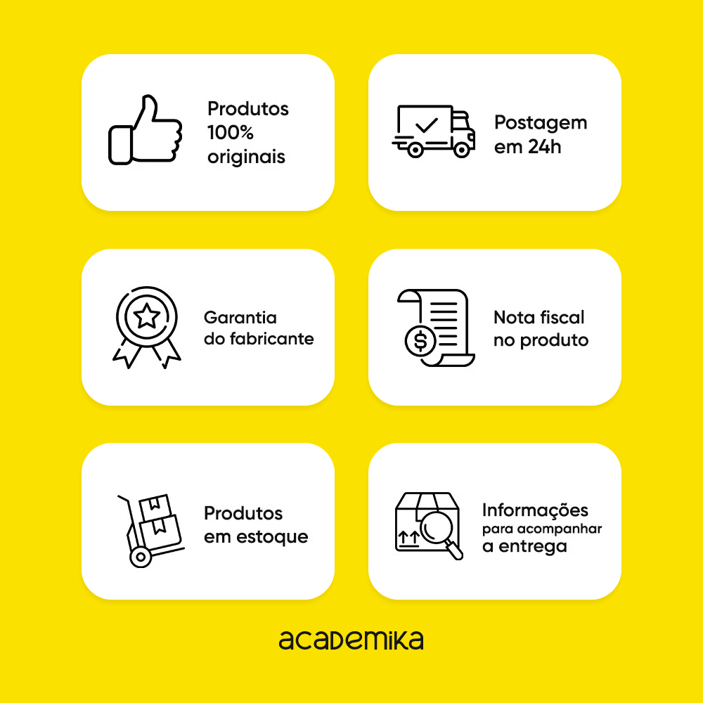 Importante: verifique o tamanho e quantidade de furos corretos, abaixo temos tabela com medidas e furações. Produzido no Brasil pela Academika®, utilizando papel reflorestado de alta qualidade e impresso com tinta ecológica (livre de metais pesados). Tipo do papel: Ivory Gramatura: 90g Quantidade de folhas: 80 Formato/dimensões: Grande - 20 x 27,5 cm (11 furos) Médio - 17x 23 cm (9 furos) Pequeno - 14 x 20 cm (8 furos) Cor do papel/miolo: Marfim Cor da impressão/miolo: Cinza claro Textura do papel/miolo: Levemente texturizada Composição: Celulose Livre de Ácidos: Sim Colado na massa: Sim Validade: Indeterminada Garantia: 90 (noventa) dias contra defeitos de fabricação Conservação: local seco e arejado Imagens meramente ilustrativas. As cores podem variar de acordo com o seu monitor/smartphone. Não recomendado para crianças menores de 3 anos. Em caso de impressão, consulte antes o manual e/ou fabricante da impressora. A embalagem pode variar. Pode haver variação de cor, gramatura e cor de impressão de lote para lote.