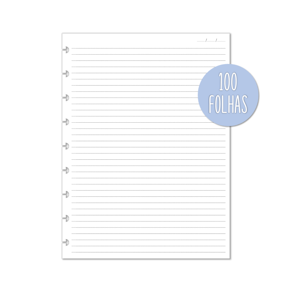 Refil para todos os tamanhos e tipos de cadernos de discos! E você já sabe? Com o caderno de discos você pode colocar e tirar folhas quando quiser! Função de um fichário só que super compacto! MUITA ATENÇÃO NA ESCOLHA DO TAMANHO CORRETO! NA DÚVIDA, SIGA PELA QUANTIDADE DE FUROS DO SEU CADERNO CONFORME ABAIXO: Medidas do refil grande 11 furos: - Folhas: 27,5x20cm Medidas do refil médio 9 furos: - Folhas: 23,1x17,2 cm Medidas do refil pequeno 8 furos: - Folhas: 14x20cm Medidas do refil A6 6 furos: - Folhas: 14,8x10,5 cm Todos possuem 100 folhas por unidade de compra e gramatura 90g (gramatura padrão para Cadernos de Discos); ESTE ANÚNCIO É SOMENTE PARA PAUTADO, DEMAIS MODELOS EM OUTROS ANÚNCIOS! ESTE REFIL NÃO PODE SER PERSONALIZADO! * Compatíveis também com a maioria das marcas de Cadernos de Disco! Obs.: Todos os cadernos e acessórios são feitos um a um artesanalmente com muito amor e carinho! Por isso pode ser que tenha pequenininhas diferenças de um produto para o outro.