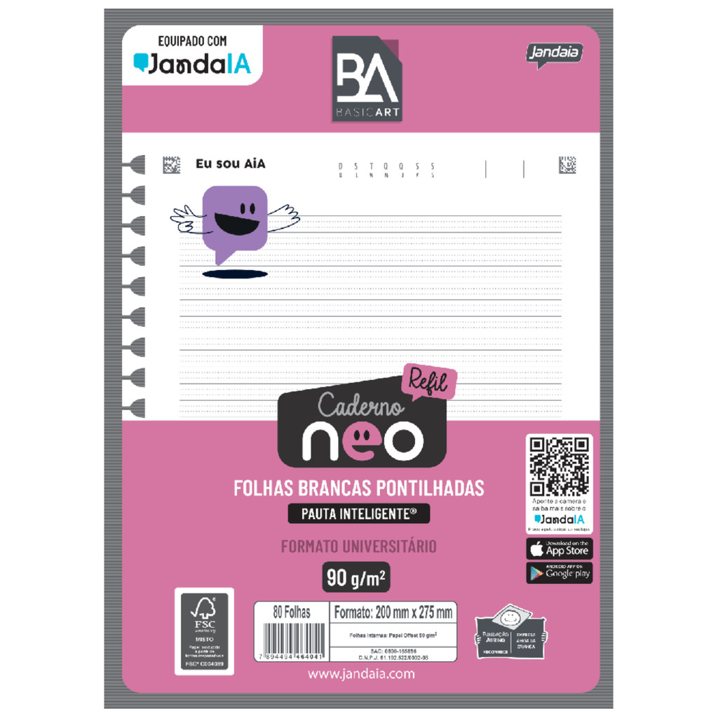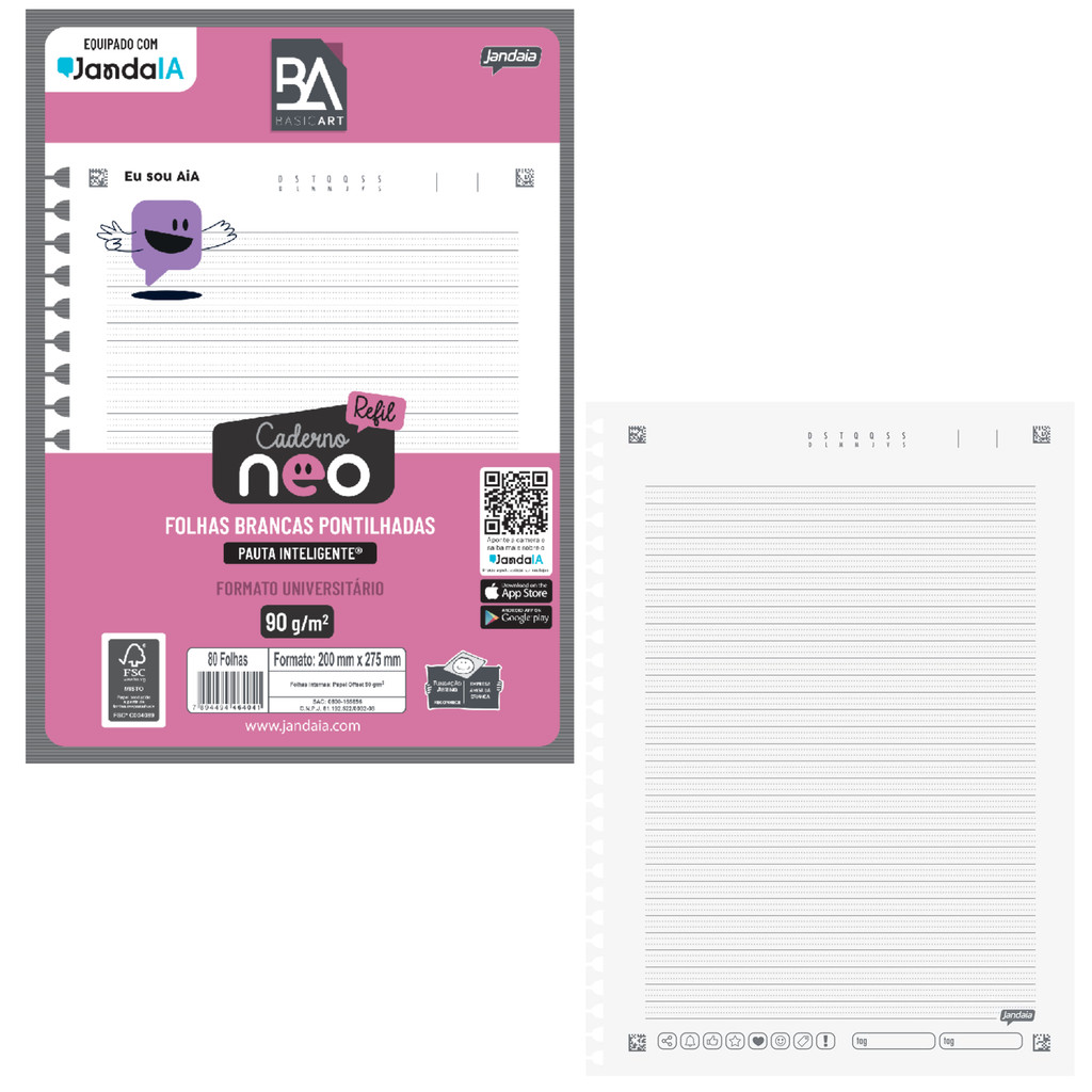 **Descrição** Revolucione seus estudos com o refil mais avançado do mundo. Equipado com JandaIA seu refil com pauta inteligente.