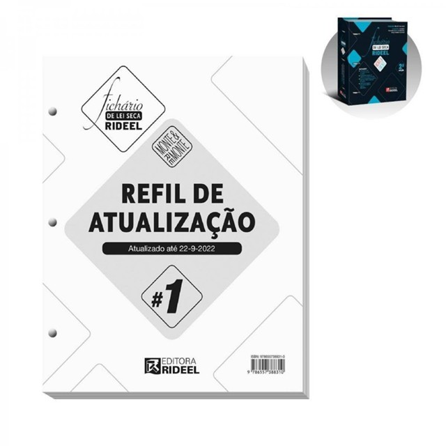 Coord.: Ricardo Baronovsky, Coorganizadores: Luiz Antônio, Ralpho Waldo de Barros Monteiro Filho e Rodrigo Francisconi Costa Pardal Refil de Atualização #1 – 2ª edição Atualizações do dia 06/05/2022 a 22/09/2022. Agora você poderá substituir suas páginas que sofreram atualizações e manter o seu Fichário (2ª edição - Capa Preta) sempre atualizado. Sua nova maneira de estudar nunca foi tão divertida! IMPORTANTE: Esse refil não acompanha o Fichário de Lei Seca Rideel – 2ª edição.