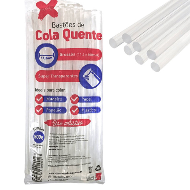 Refil de cola quente grossa, 500g, Make+ aparece na subcategoria Colas (de Papelaria) na Shopee Brasil por R$ 51,81. Avaliado em 5.0/5 pelos compradores e 1 unidade vendida, este produto se destaca pelo excelente custo-benefício.