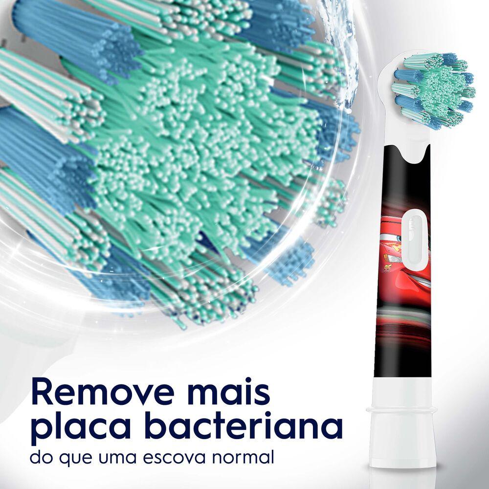 Refil Escova Eléctrica Oral-B Disney Pixar Cars 2 Unidades A Escova de Dentes Elétrica Oral-B Kids Pixar Cars para crianças maiores de 3 anos combina a diversão das Cars com a limpeza suave e eficaz de uma escova de dentes Oral-B. Especialmente projetada para crianças, esta escova limpa os dentes suavemente e remove mais placa bacteriana do que uma escova manual normal, protegendo a saúde do seu filho. Além disso, sua cabeça redonda possui cerdas extra macias que protegem a gengiva dos pequenos. A escova de dentes elétrica Oral-B Kids possui um cronômetro para que as crianças escovem os dentes por dois minutos, tempo de escovação recomendado pelos dentistas, que ajudará seu filho a desenvolver bons hábitos de escovação para toda a vida. A escova é compatível com todos os refis de escovas elétricas Oral-B e possui cabo emborrachado, resistente à água e ergonômico, adaptado para as crianças. Para transformar a escovação ainda mais divertida, Oral-B recomenda o uso do aplicativo Disney Magic Timer, com adesivos, conquistas e muito mais para ajudar na saúde bucal infantil. • Projetado especificamente para limpar suavemente os dentes das crianças • Cabeça redonda especial para boca infantil • Filamentos extra suaves cuidam das gengivas mais delicadas • Funciona com o app Disney Magic Timer da Oral-B • Incentiva a escovagem por 2 minutos, graças ao seu cronômetro embutido e seu temporizador embutido