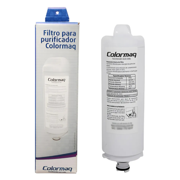 Filtro do Purificador de Água Colormaq O filtro Colormaq recebeu nota máxima do Inmetro em retenção de cloro. Além disso, retém impurezas, reduz odores e gostos estranhos através de um moderno sistema de Tripla Filtragem. A troca do refil é super simples e você mesmo pode fazer, basta girar e trocar. Essa troca deve ser feita a cada seis meses ou 4 mil litros de água. Refil Filtro Colormaq para Purificadores de água Colormaq, Refil girou trocou e fácil instalação. Certificado Inmetro. É compatível com os modelos - CPUELSABEN - CPUELSACEN - CPUHEVABAN - CPUHEVACAN - CPUHEVABBN - CPUHEVACBN - Características: Marca: Colormaq Vazão Nominal: 48 Litros/h Pressão Máxima: 4 Kg/f Pressão Mínima: 0,4 Kg/f Temperatura Máxima: 40ºC Temperatura Mínima: 5ºC Aprovado pelo Inmetro: Sim Informações Adicionais: Aprovado de acordo com a NBR 16098:2012. Destinado ao uso em água que atende à Portaria nº 2.914 do Ministério da Saúde. - Itens inclusos: 1 Filtro - Garantia pelo fabricante: 3 Meses. * ATENÇÃO * O elemento filtrante possui garantia somente contra defeitos de fabricação por um período de 03 meses (90 dias), podendo saturar antes do previsto para vida útil devido às condições da água onde será instalado. Este produto possui validade por tempo indeterminado até sua instalação desde que conservado em sua embalagem original, protegido do calor, umidade, poeira e contaminação.