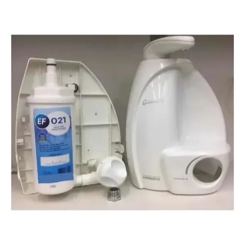 DESCRIÇÃO REFIL COMPATÍVEL - MARCA EF 021 Compatível com os Purificadores Gioviale Lorenzetti Rpc-01. As marcas citadas são propriedades de seus respectivos fabricantes, sendo citadas a título de comparação de compatibilidade. QUALIDADE COMPROVADA: Etapa 1 - POLIPROPILENO MELT BLOW Retenção de barro, limo, ferrugem e demais sedimentos obtida pelo processo MELT BLOW Polipropileno compactado. ETAPA 2 - CARVÃO ATIVADO Remoção de cloro, reduz o nível de metais pesados como chumbo e ferro , sabores e odores desagradáveis da água e realiza o controle do nível microbiológico através do CARVÃO ATIVADO IMPREGNADO DE PRATA COLOIDAL. ETAPA 3 - MINERAIS Material natural que elimina bactérias , possui EFICIÊNCIA BACTERIOLÓGICA e AÇÃO BACTERIOSTATÍCA que CONTROLA A PROLIFERAÇÃO DE BACTÉRIAS. ETAPA 4 - POLIPROPILENO MELT BLOW Fase final de retenção de partículas e distribuição uniforme da água. CARACTERISTICAS E INSTRUÇÕES DE INSTALAÇÃO : Características técnicas: - Vida útil: 4.000 L ou troca a cada 12 meses ; Vazão: 60L/H; - Pressão mínima: 20 kPa ; Pressão máxima: 400 KPa; - Eficiência retenção de particulado: Classe C 5 a 15 u - Eficiência retenção de cloro: Conforme NBR 16098 - Eficiência bacteriológica: Conforme NBR 16098 Instruções para troca: Não há necessidade de fechar o registro central, apenas mantenha o registro do produto fechado - Retire a bica puxando-a para cima; - Aperte os botões laterais para remover a capa; - Retire o refil inclinando-o para frente e desconectando-o da tampa traseira do produto e depois puxe-o para a esquerda; - Com seu novo refil inclinado para frente, encaixe o duto de entrada até o fundo da câmara, empurre o refil até que a trava superior se encaixe na tampa traseira; - Feche o aparelho; - Abra o registro do produto e deixe fluir água até que saia límpida; - Essa água poderá sair escura devido a presença de resíduos do carvão.