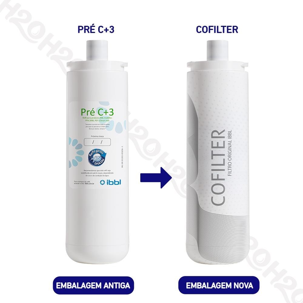 O Filtro Refil Pré C+3 da IBBL, mudou o rótulo e o nome. O nome atual é Filtro Refil "Cofilter". O Refil Cofilter foi criado para os Purificadores IBBL PFN2000, PFQ2000, PDF, Smart H2O e BDF. Certificado pelo INMETRO, produto original e possui fácil instalação. O Refil Cofilter possui uma etapa de filtragem, retém as impurezas e partículas da água. O IBBL Pré C+3, ainda conta com a vantagem do “Refil Girou Trocou” oferecendo maior praticidade e economia na hora da troca, não necessitando da presença de um técnico. Troque você mesmo seu Refil! Garantia e Validade: O elemento filtrante possui garantia somente contra defeitos de fabricação por um período de 03 meses (90 dias), podendo saturar antes do previsto para vida útil devido às condições da água onde será instalado.Este produto possui validade por tempo indeterminado até sua instalação desde que conservado em sua embalagem original, protegido do calor, umidade, poeira e contaminação.