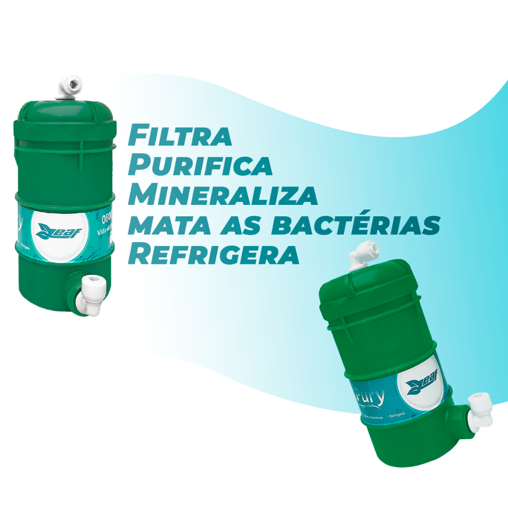 Refil P/ Filtro Purificadores Leaf 5 Etapas De Purificação Refil Filtro Purificador Leaf Pury e Compact. Produto indicado para os seguintes aparelhos: Purificadores LEAF modelos: Pury, Pury Compact e Nature Bebedouros de Coluna das marcas LEAF Produto Original LEAF ETAPAS DE PURIFICAÇÃO: 1 - Filtragem — Polipropileno de 25 micra A água tratada atravessa o elemento filtrante de 25 micra, reduzindo significativamente as partículas em suspensão na água (barro, areia, lodo, limo, ferrugem e etc). 2 - Desinfecção - Zeolife Material natural com efeito bactericida e bacteriostático (eficiência bacteriológica conforme NBR 14908), que remove metais pesados (chumbo, níquel, cromo, manganês, zinco, mercúrio e cobre), amônia, turbidez, cor, sabor e preserva os sais minerais. 3 - Purificação — Carvão ativado A água previamente tratada atravessa os poros do carvão ativado, da casca de coco de Babaçu e pela adsorção dá sequência na redução do cloro e de outras substâncias químicas e orgânicas. 4 - Carvão ativado impregnado com prata coloidal Etapa de continuidade á retenção do cloro livre e compostos orgânicos, iniciando-se o processo de inibição e redução de bactérias através da propriedade bacteriostática da prata,reduzindo uma eventual contaminação da água, previamente tratada, por bactérias como Escheríchia coli (bactérias pertencentes ao grupo dos coliformes fecais), Pseudonomas aeruginosas e Microcystis aeruginosa. 5 - Filtragem — Manta e tela texturizada Término do processo de purificação e filtragem. A água atravessa a manta e a tela texturizada de 150 micra, promovendo mais uma filtragem, fornecendo água límpida, transparente, sem gosto e sem cheiro.