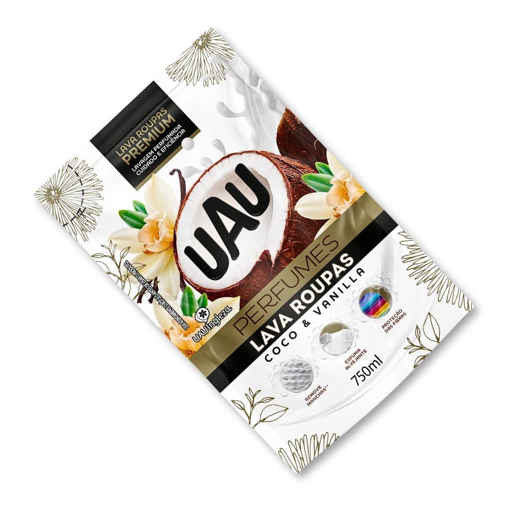 LAVA ROUPAS UAU PERF COCO E VANIL 750MLProteção para suas roupas com limpeza de alta performance! Limpeza profunda da fibra Remoção de manchas Proteção para o tecido Cuidado progressivo Proteção contra maus odores