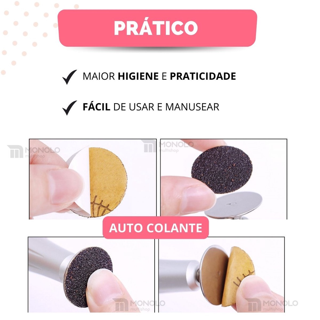 | Refil Lixa Disco Pedicuro Adesiva 100 unidades Pedicuro Envio Rápido este produto | R$ 16,90 | 26% | 4.8/5 | 77 |