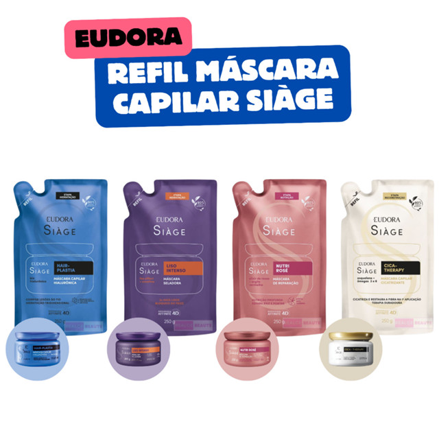 Refil Máscara Capilar Siàge 250g Eudora - Liso Intenso, Cica Therapy, Nutri Rosé, Hair Plastia