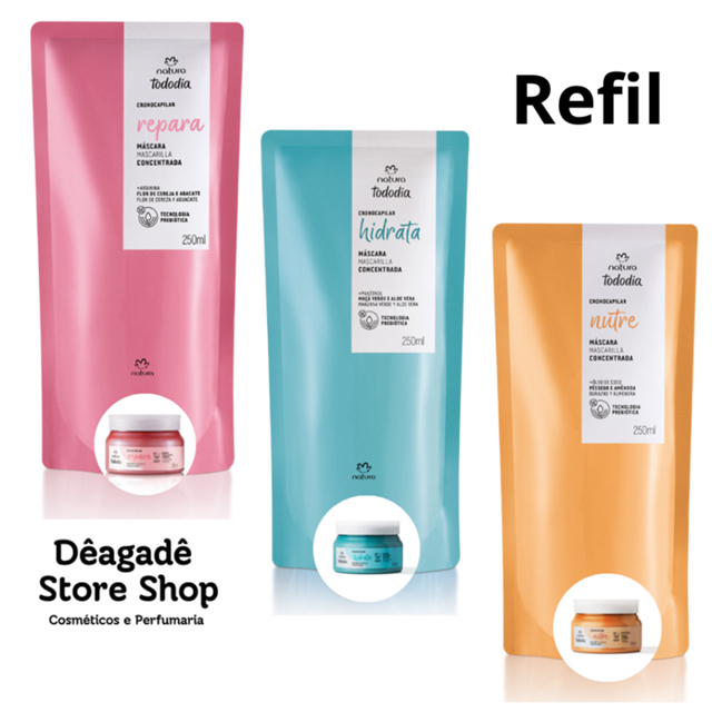 Refil Máscara Natura Cronograma Cronocapilar Tododia Hidrata Nutri Repara 250ml integra a oferta da Shopee Brasil na subcategoria Tratamento Capilar (de Beleza) por R$ 39,90.