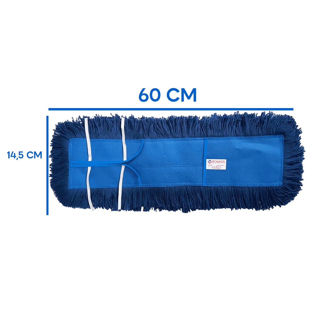 Refil Mop Pó Acrílico 60 cm Tipo Bralimpia Euro Romher Azul Profissional Limpeza