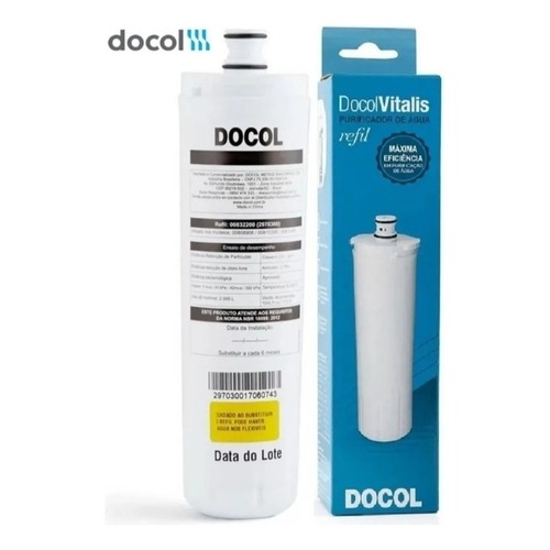 Ficou alguma dúvida? Faça sua pergunta, ficaremos satisfeitos em lhe atender bem. Emitimos Nota Fiscal. Qualidade, preço Justo e atendimento Perfeito. O refil para o purificador dessa linha proporciona facilidade e conforto para quem procura por um produto neste estilo. Ele limpa a água, elimina 99% das bactérias, reduz o cloro e retém partículas, a fim de te proporcionar facilidade no dia a dia, além de entregar uma água pura, com qualidade e certificação do Inmetro. Além disso, o produto oferece uma bancada mais limpa e sofisticada, visto que a presença do filtro fica instalado embaixo da bancada, exigindo apenas um furo para a instalação. A troca facilitada é um dos benefícios do purificador da linha DocolVitalis. Além de proporcionar uma água mais saudável e livre de bactérias, o refil pode ser facilmente substituído pelo próprio consumidor, sem a necessidade de fechar o registro geral da água ou utilizar ferramentas. Com apenas um clique, você substitui o refil antigo pelo novo. VANTAGENS - Garantia de água pura de verdade, através do seu purificador que elimina 99,9% das bactérias, remove 75% do cloro e partículas presentes na água; - Consta o rigoroso padrão de qualidade dos seus produtos, por meio da Certificação INMETRO; - A Certificação SGS comprova a eficiência de nosso produtos e tecnologias, através desta entidade que é referência mundial em verificação, testes e certificações; - Acabamento cromado biníquel de alta durabilidade e maior resistência à corrosão. Conserva a beleza e o brilho do produto por muito mais tempo. INFORMAÇÕES GERAIS - Referência: 00832200; - Compatibilidade: Linha DocolVitalis; - Rendimento: Até 2.000L; - Cor: Branco; - Temperatura máxima da água: 40C; - Norma: NBR 16098. DIMENSÕES Comprimento: 220 mm; Largura: 59 mm; Altura: 220 mm. Ficou alguma dúvida? Faça sua pergunta, ficaremos satisfeitos em lhe atender bem. Emitimos Nota Fiscal. Qualidade, preço Justo e atendimento Perfeito.