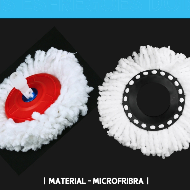 Ideal para manter a limpeza sempre eficiente e prática. Feito de microfibra de alta absorção, remove sujeiras com facilidade sem riscar ou danificar os pisos. Seu design permite uma rotação de 360 graus, garantindo alcance em todos os cantos e facilitando a remoção de resíduos. Compatível com mops giratórios de 8-14 litros, é fácil de substituir e lavar, proporcionando mais durabilidade e economia. Perfeito para uso em diversos tipos de superfície, como pisos frios, madeira e laminados, tornando a rotina de limpeza mais ágil e eficaz. Especificações; Composição: PP e microfibra
