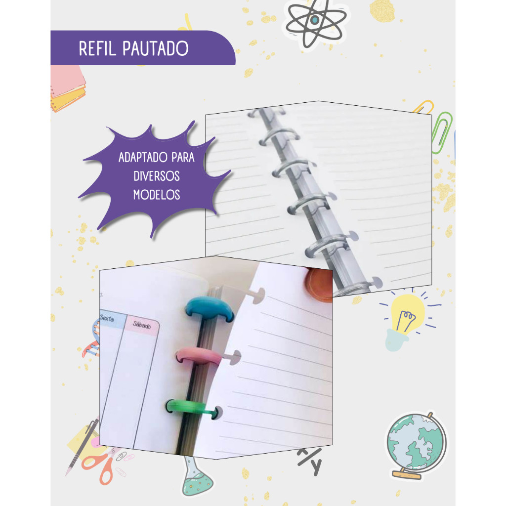 Refil Pautado Para Caderno Inteligente 11 Discos 200x275mm 100 Folhas Grandes
