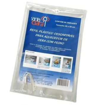 Refil Plástico Descartável para Termoceras e Aquecedores de Cera. É indicado para proteger os aparelhos aquecedores de cera, pois ao colocar o refil, não haverá contato direto da cera com o aparelho, facilitando para o profissional a retirada da cera quando necessário, sem desperdiçá-la. Acompanha fechos para fechar o refil quando necessário. Temperatura máxima suportada: 100 graus Modo de usar: Colocar o refil sobre o recipiente de alumínio do aquecedor, em seguida colocar a cera para derreter sobre o plástico, e utilizá-la normalmente. Quando necessário remova o refil do aquecedor de cera, feche-o com o fecho e guarde a cera, sem desperdiçá-la. Tamanho: 50 cm x 50 cm Produto não perecível Validade indeterminada Contém 6 unidades Fabricante: Santa Clara