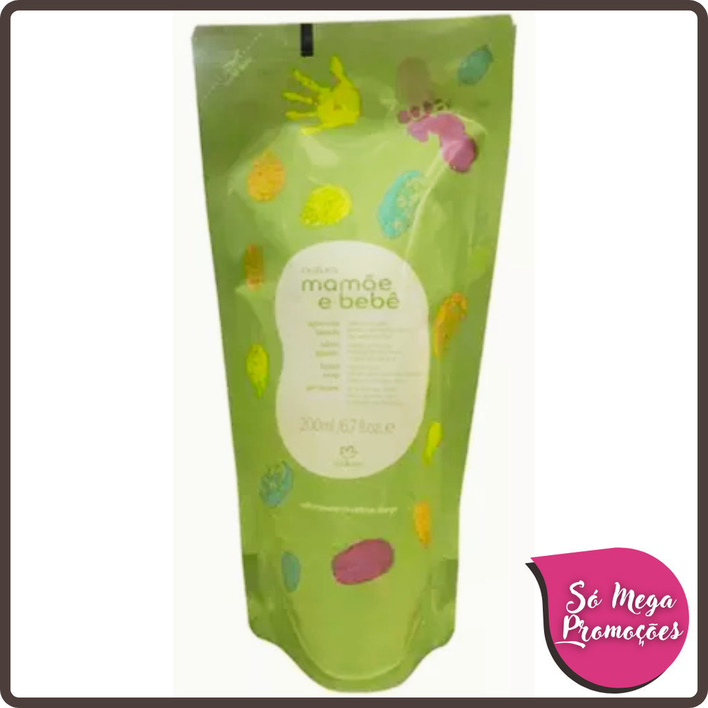 Sabonete Líquido da Cabeça aos Pés Mamãe e Bebê - 200 ml A fórmula vegana do Sabonete Líquido Mamãe e Bebê contém somente o essencial para limpar de forma suave e delicada, mantendo a hidratação natural da pele do bebê. Não irrita os olhinhos e pode ser usado desde o primeiro banho. Benefícios • Fórmula 100% segura, para ser usada desde o primeiro dia de vida; • Limpeza delicada; • Mantém a hidratação da pele do bebê; • Somente com o essencial para a pele sensível do bebê; • Não arde os olhos; • Frasco 100% plástico verde; • Dermatologicamente e oftalmologicamente testado; • Sem ingredientes controversos. Dicas de uso: Coloque uma pequena quantidade nas mãos e espalhe de forma suave, na cabecinha e no corpinho do bebê. Ao final, enxágue até a remoção completa. =============================================================================================== Só Mega Promoções!! Sou consultora de Beleza Natura a 18 anos. Trabalho somente com produtos originais e lacrados. Estou à disposição para qualquer dúvida, sinta se a vontade e faça suas perguntas. Os produtos serão enviados em até 24 horas uteis após a aprovação de compra! Sua entrega é garantida pela Shopee envios. Grato pela preferência e boas compras!!