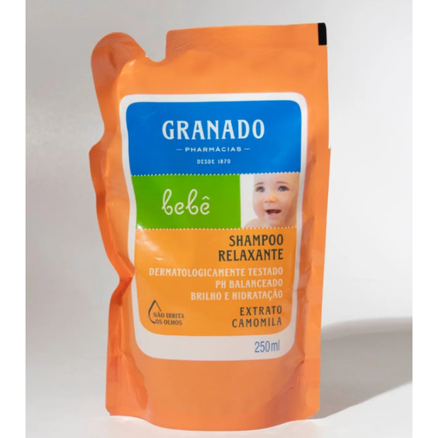 O Shampoo Granado Bebê Camomila Refil 250ml foi desenvolvido especialmente para o couro cabeludo delicado dos bebês. Sua fórmula suave é enriquecida com extrato natural de camomila, que acalma e perfuma suavemente, além de ajudar a realçar o brilho dos cabelos claros. Dermatologicamente testado, é hipoalergênico, sem corantes, sem parabenos e com pH equilibrado. Limpa sem irritar os olhos e não resseca os fios, podendo ser usado diariamente. A embalagem refil é prática, econômica e sustentável, ideal para repor o produto no frasco original com menos impacto ambiental.